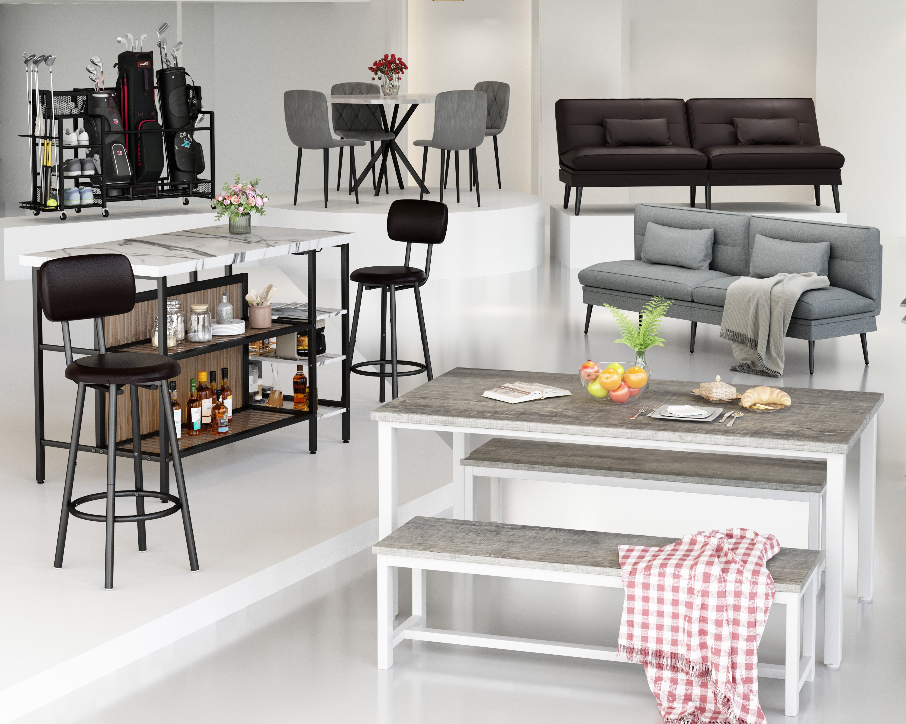 Hmlinktt 4 Pieces Kitchen Table and Chairs Set for 4, 43 inch Dining Sets with Benches and Storage Rack for Small Spaces, Breakfast Nook, Apartment, Grey